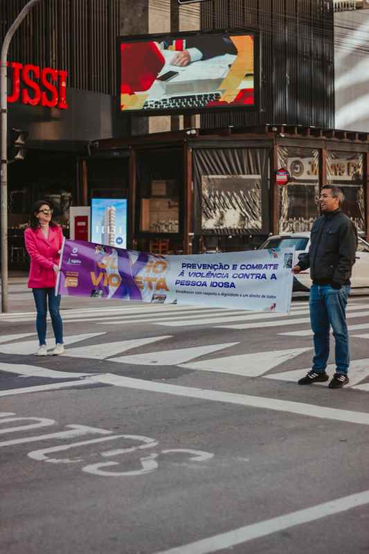 Uma mobilização realizada na manhã desta terça-feira (24), em frente ao Shopping Russi & Russi, na Meia Praia, marcou o Dia Mundial de Conscientização da Violência contra a Pessoa Idosa. A ação integra a campanha Junho Violeta e teve como objetivo sensibilizar a população sobre os diferentes tipos de violência que ainda afetam milhares de pessoas idosas no Brasil.