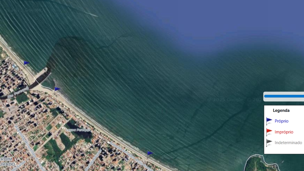Em contraste, em 2025, com a obra em estágio avançado, as 40 coletas realizadas no ponto da Rua 319 apresentaram resultado integralmente positivo, com a água do mar classificada como 100% própria para banho.