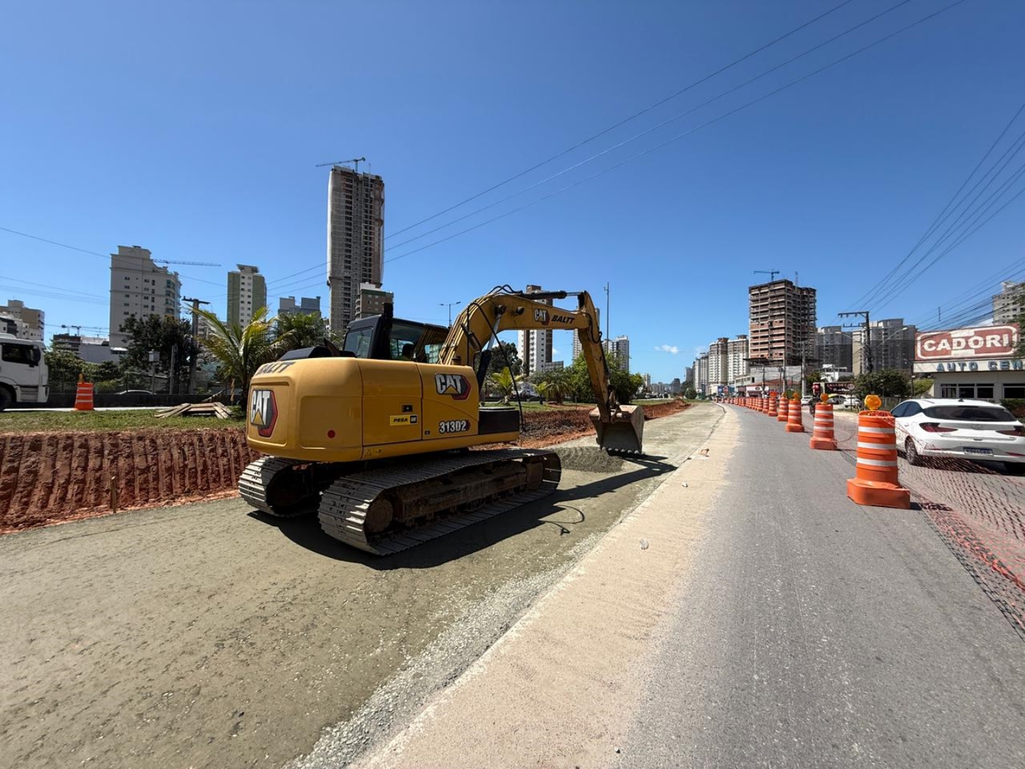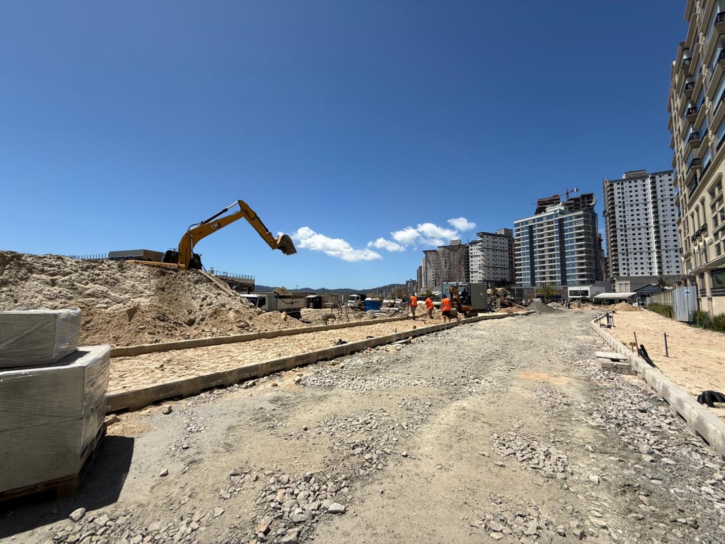 Ainda em Meia Praia, as intervenções também seguem em ritmo intenso na reurbanização da orla, no trecho entre as ruas 319 e 323B. A fase de drenagem está sendo concluída, e agora as equipes trabalham no nivelamento do solo, preparando o espaço para a próxima etapa das obras.