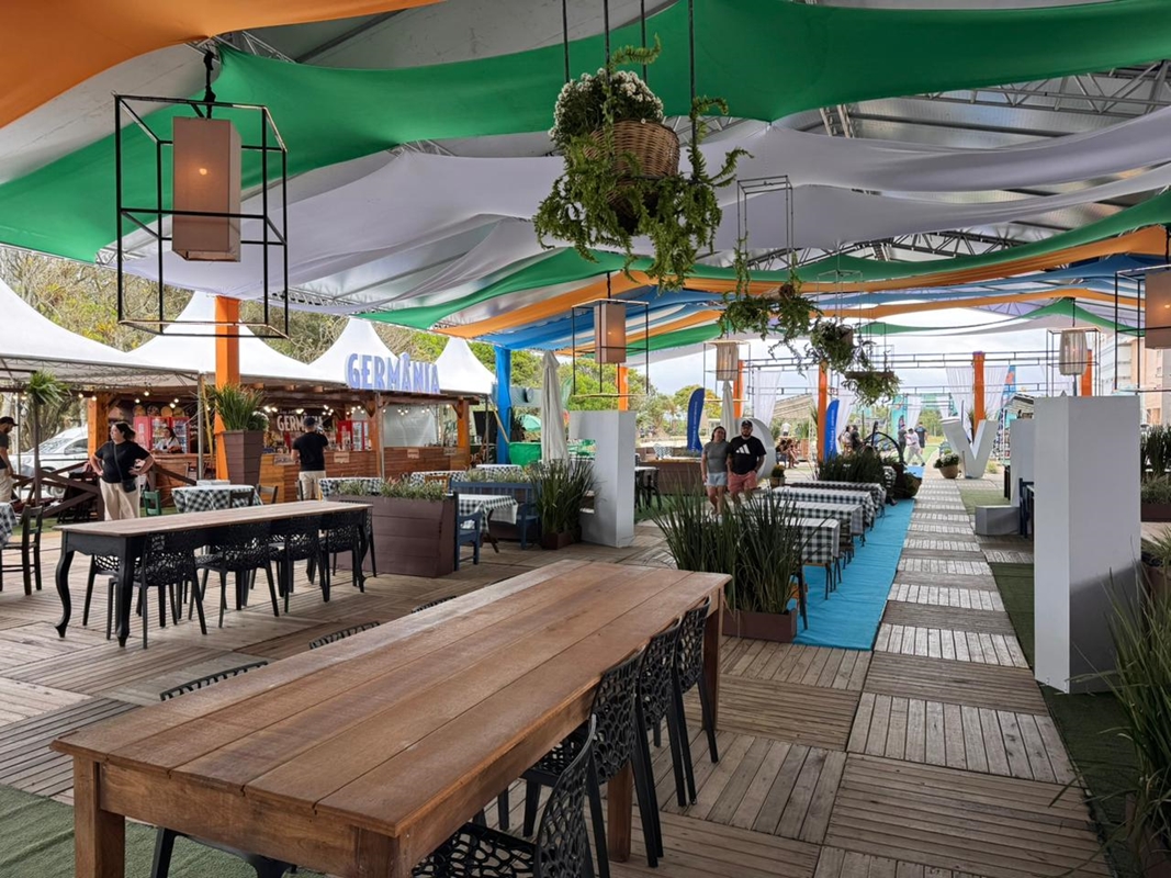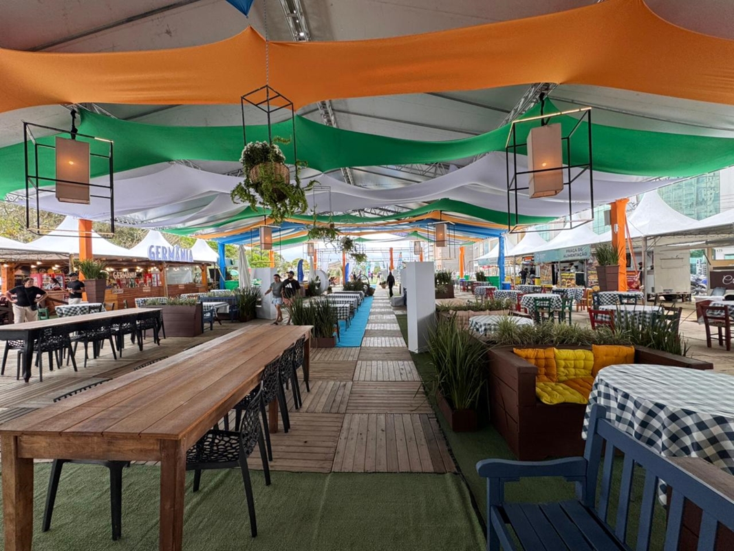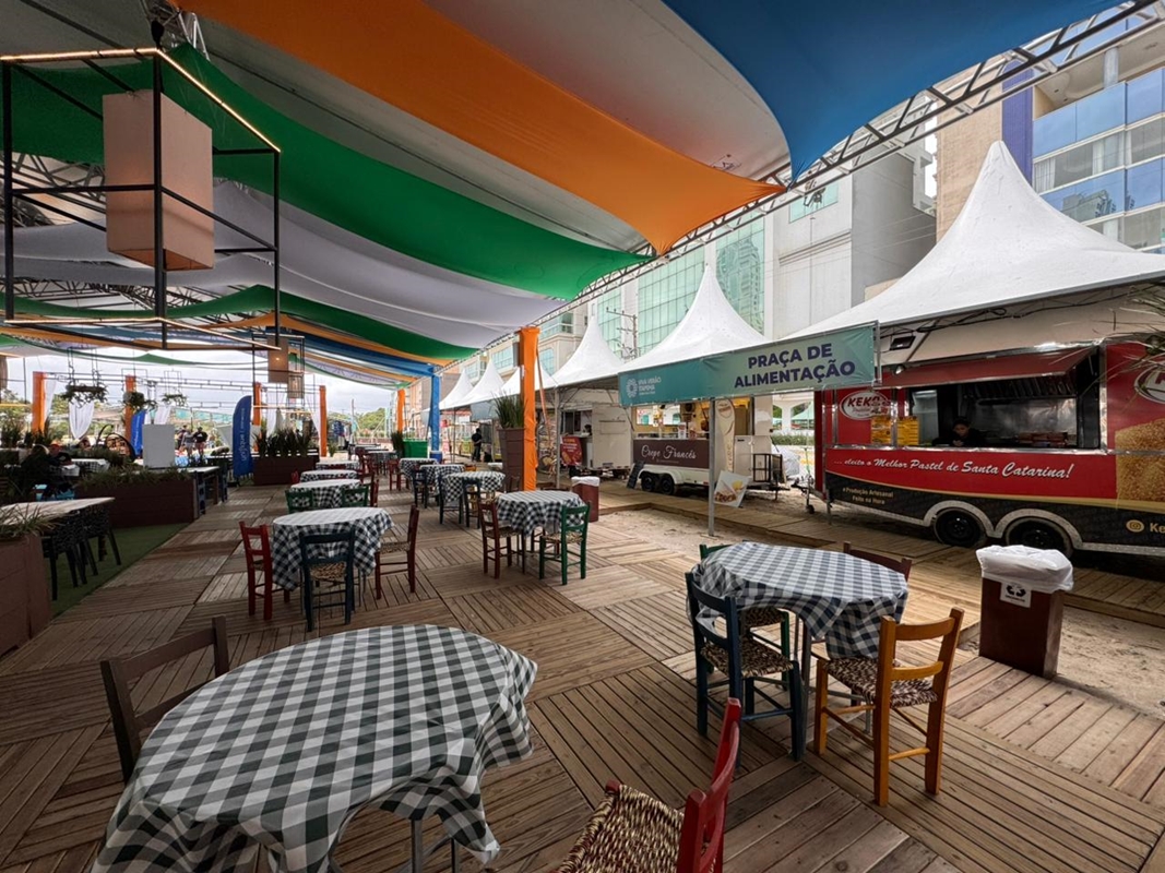 Além da música, o espaço conta com uma praça de alimentação completa, oferecendo crepe francês e suíço, pastel, hambúrguer, pizza, açaí, porções, sorvete, doces variados, chopp e muito mais, garantindo uma experiência completa para moradores e turistas.