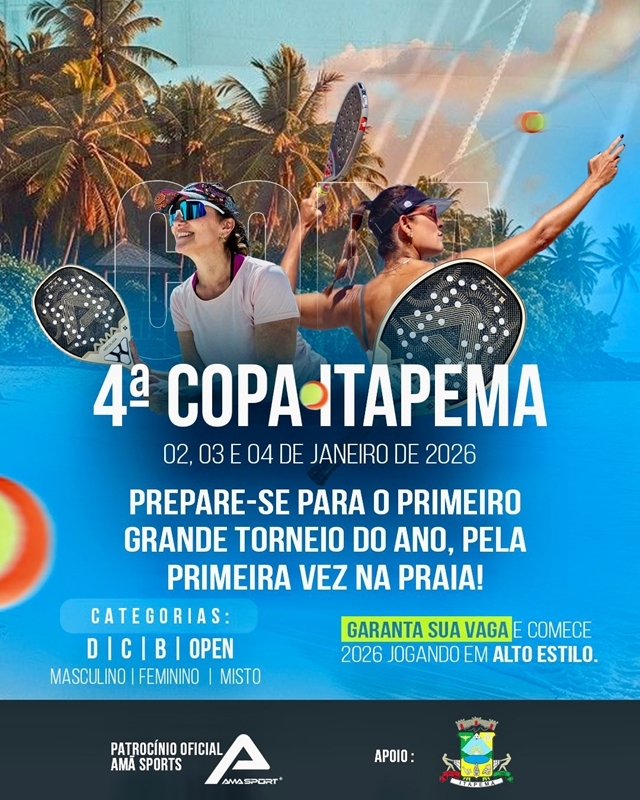 “Itapema vem se firmando como um dos principais destinos para eventos esportivos de praia. A Copa de Beach Tênis valoriza nossos atletas, movimenta a cidade e proporciona ao público um grande espetáculo esportivo em um espaço privilegiado”, afirmou o secretário de Esportes, Paulinho Camargo.