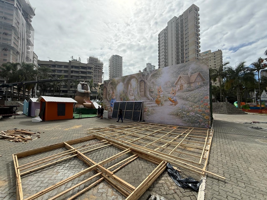 Quem passa pela Praça da Paz já percebe a movimentação das equipes e a montagem das estruturas que vão transformar o espaço na Vila de Páscoa de Itapema. Os trabalhos preparatórios começaram nesta semana e marcam a contagem regressiva para a abertura oficial da programação.