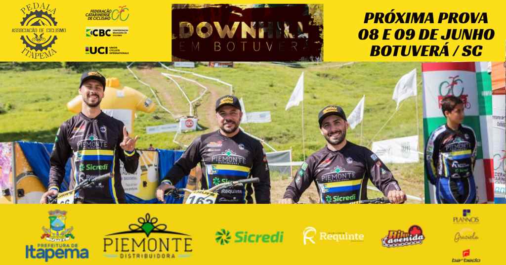 O time de Downhill da ITAPEMA Ciclismo PIEMONTE Distribuidora disputa neste fim de semana etapa do ranking catarinense e brasileiro de Downhill. A prova será realizada na pista do Pedra Bike Park, em Botuverá (SC). A equipe será representada por Diogo Lopes (sub-30), Raphael Konig (MB1), Thiago Custódio (MA1) e Leonardo Machado (Juvenil). “É a […] Leia mais