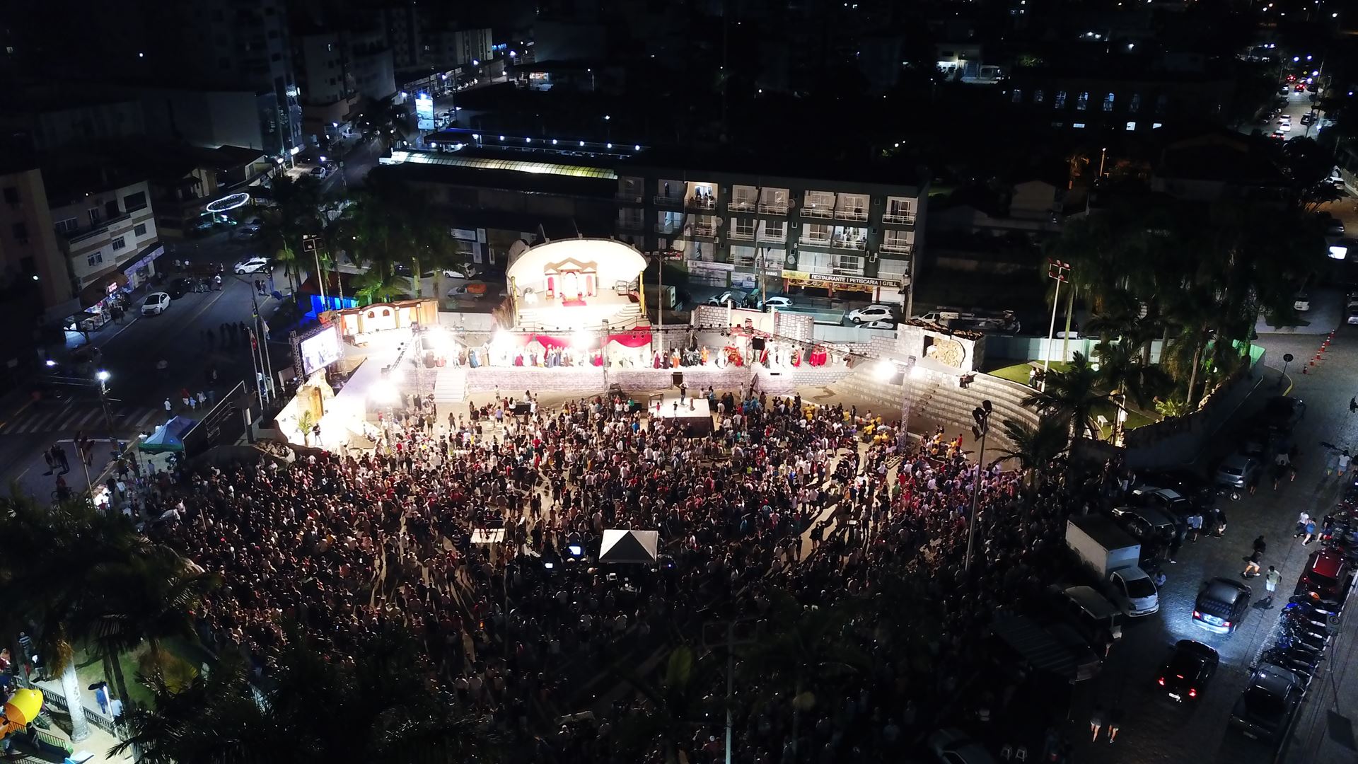 Uma noite de encanto, arte e espetáculo pôde ser vista de perto na noite desta Sexta-Feira Santa (19/04) em Itapema com o espetáculo da Encenação da Paixão de Cristo, na Praça da Paz. Pelo menos 200 pessoas estavam envolvidas na produção, entre atores, bailarinos e figuração. A peça contou os últimos passos da vida de […] Leia mais