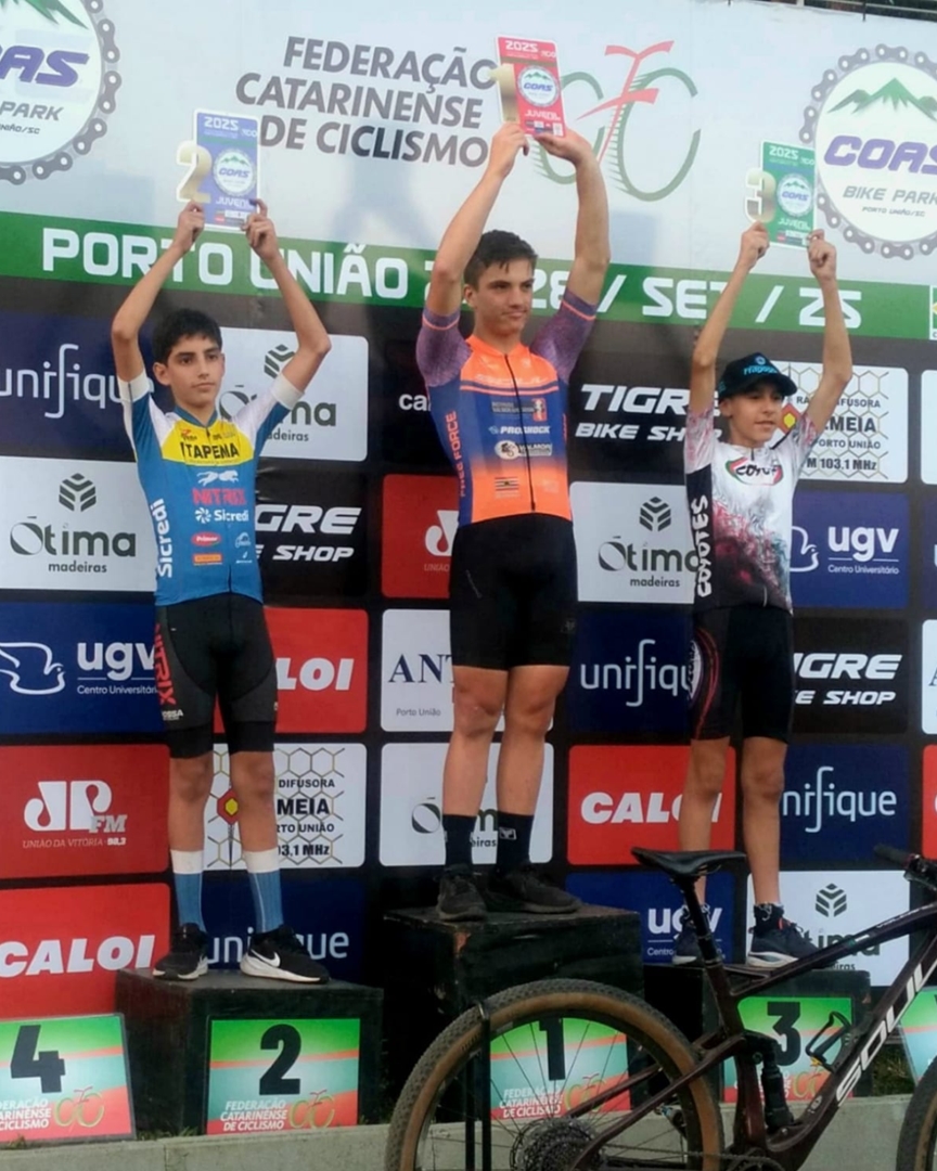 Com foco na formação de novos talentos e na busca por pontos no campeonato estadual, a Pedala Itapema obteve resultados expressivos no XCO. Na categoria juvenil, Eduardo Pinheiro garantiu o primeiro lugar, enquanto João Furlick conquistou a segunda posição, consolidando o bom desempenho da equipe na categoria. Luisa Abalos também foi destaque ao vencer na categoria juvenil feminina.