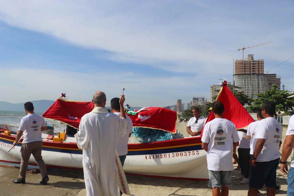 A celebração aconteceu próximo ao Rancho do Henrique e foi conduzida pelo padre Antônio Schimidt, da Paróquia Senhor Bom Jesus dos Aflitos. A cerimônia é organizada pelo Governo de Porto Belo, por meio da Fundação da Cultura e da Secretaria de Pesca e Aquicultura.