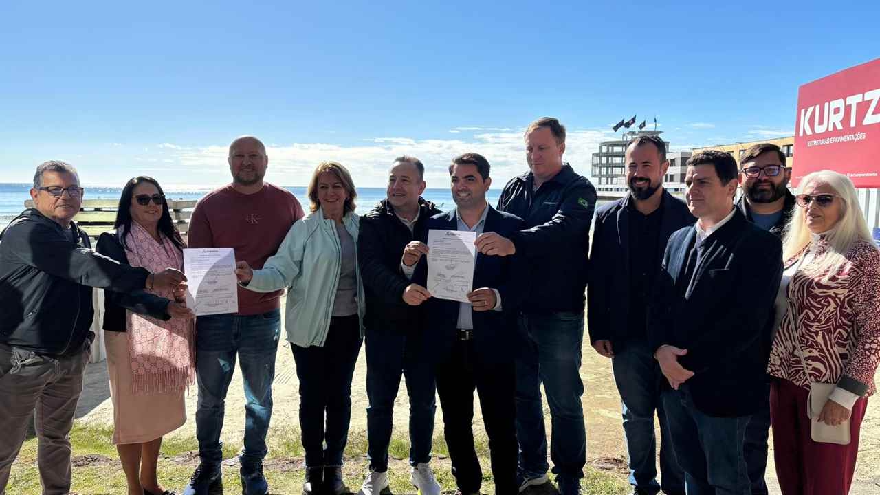 A Prefeitura de Itapema assinou nesta segunda-feira (07) a ordem de serviço para a reurbanização da orla entre as ruas 319 e 323B, no bairro Meia Praia. O trecho de aproximadamente 500 metros será completamente requalificado com infraestrutura moderna, servindo como projeto-piloto para o modelo de urbanização que será aplicado após o futuro alargamento da faixa de areia.