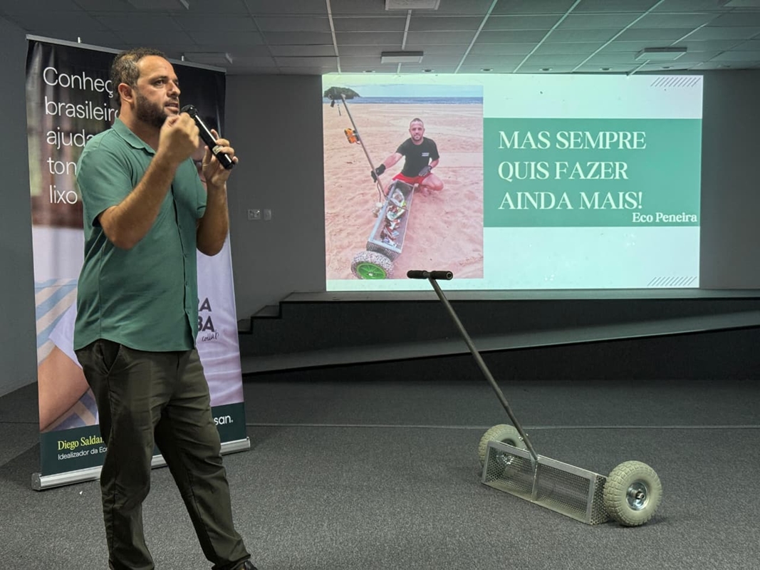Durante a palestra, o idealizador do projeto, Diego Saldanha, destacou que a iniciativa nasceu a partir de uma experiência pessoal. “Comecei a pensar nas Ecobarreiras depois de perceber a situação do rio onde eu nadava quando era mais jovem. Ver aquele lugar tomado pelo lixo me marcou muito e me motivou a buscar soluções para ajudar a mudar essa realidade”, relatou.